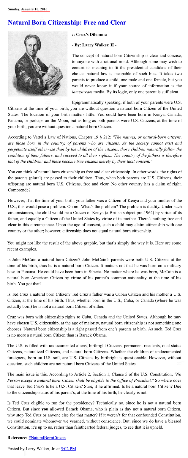 Before Honest Ted followed in the footsteps of that other transparently honest creature Barack Obama, and sealed his records (totally honest thing to do, right?) I read that he had been born in Canada, where both his parents had become Canadian citizens through naturalization. Four years after his birth in Canada, he was brought to the USA, but never naturalized in this country.